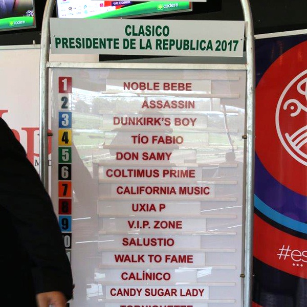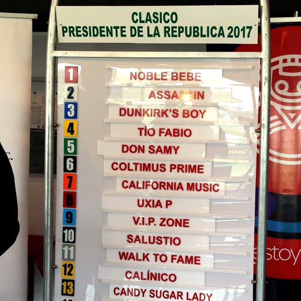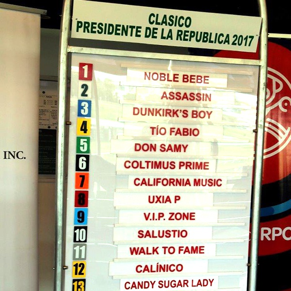 Con la presencia de Carlos Salazar Guardia, Gerente General del Hipódromo Presidente Remón, Carlos De Oliveira, Sub Director de Operaciones Hípicas, Zaira Paz, Directora de Cumplimiento y Roberto Arango, Director General de Pandeportes, junto a medios de Comunicación Social, patrocinadores, dueños, entrenadores y jinetes, se realizó el sorteo de carriles del Clásico Presidente de la República en su versión 89 en el Salón Presidencial, quedando del siguiente orden: (1) Noble Bebe- Tomás Mejía (116); (2) Assassin- Luis A. Sánchez (116); (3) Dunkirk’s Boy- sin jinete asignado (124); (4) Tío Fabio- Ángel Rivas (114); (5) Don Samy- sin jinete asignado (114); (6) Coltimus Prime- Ángel Rodríguez (126); (7) California Music- Luis E. Arango (114); (8) Uxia P.- José Morelos (118); (9) V.I.P Zone- Wigberto Ramos (126); (10) Salustio- Lorenzo Lezcano (126); (11) Wal To Fame- Omar Hernández Jr (124); (12) Calinico- Fernando Jara (116); (13) Candy Sugar Lady- Abdiel Jaén (118) y del (14) Torniquette- Roberto Pérez (126).