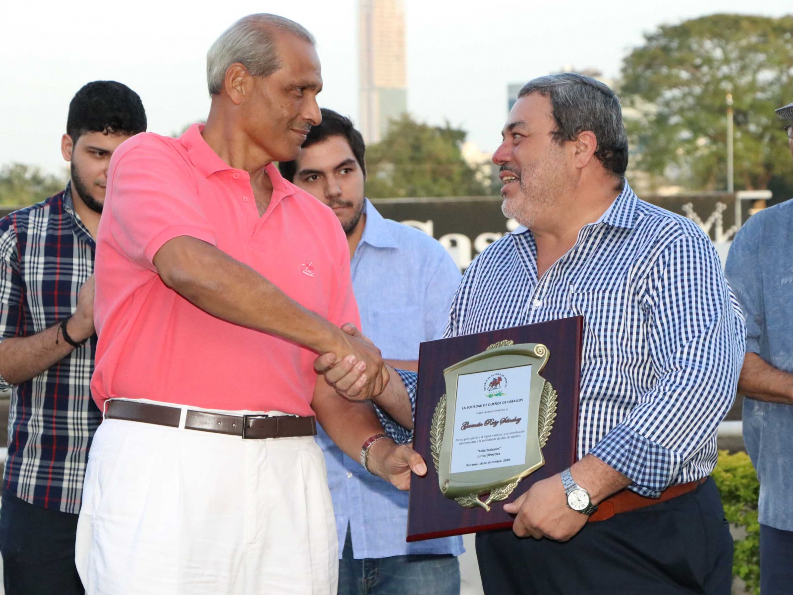Por su parte, el Ing. Bernabé Pérez, Presidente de la Sociedad de Dueños de Caballos, hizo entrega de una placa de reconocimiento a Germán Ruiz Sánchez.