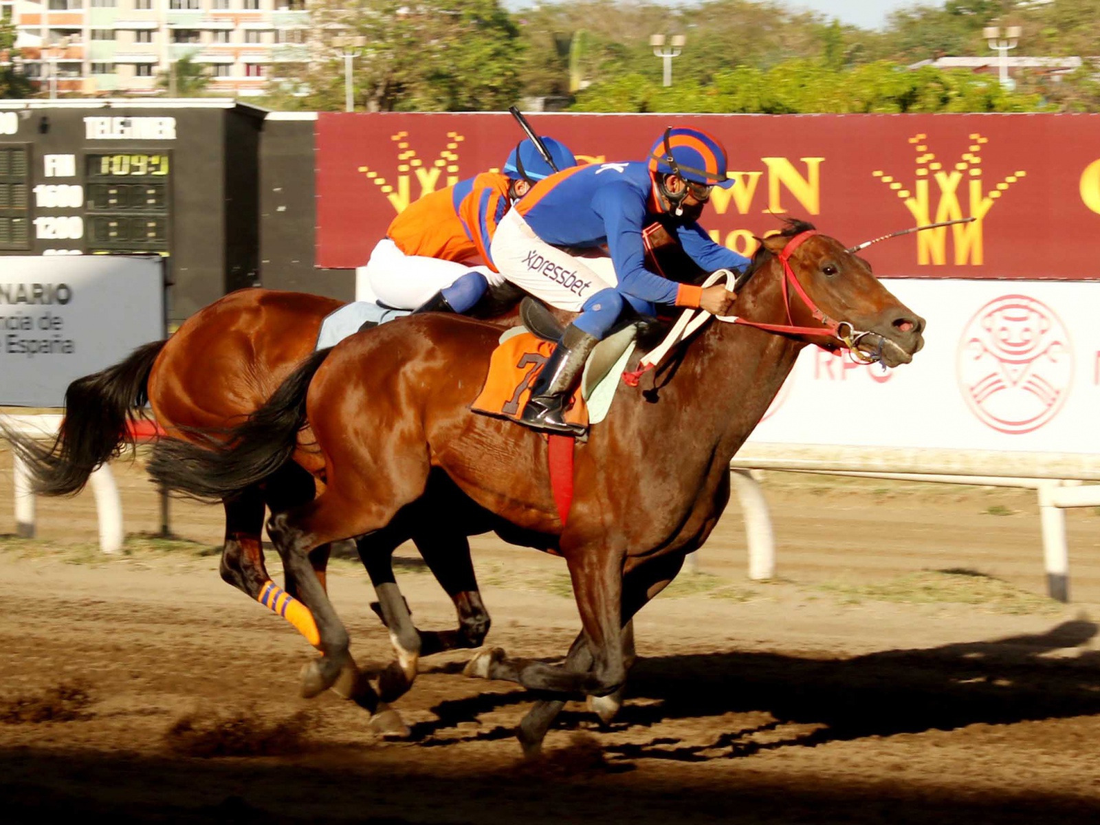 Líder Máximo, macho alazán de 6 años, hijo de Comandante en Jefe en La Batidora por El Catedrático, Criado por el Sr. Isaac Tawachi, propiedad del Stud K N, entrenado por Norman Frazier Ocampo, bajo la conducción del jinete Luis A. Santos.