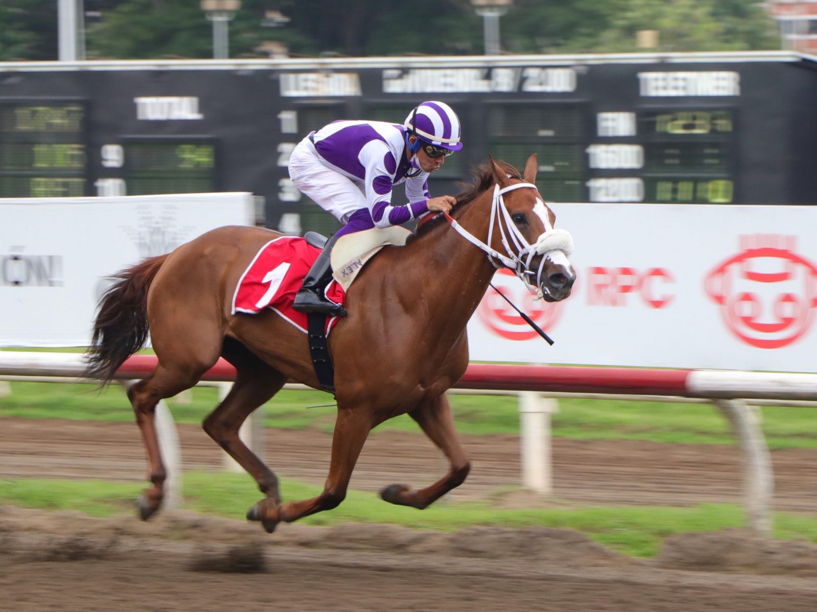 La alazana de 4 años de edad, “La Grue” logra su séptimo triunfo para los propietarios del Stud F.D.M., entrenada por Luis Magallón, y llevada al triunfo por el jinete Luis Arango.