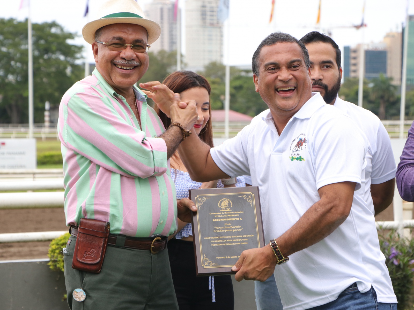 Por la empresa Hípica de Panamá, S.A., Carlos De Oliveira Jr., entregó una placas de reconocimiento al Magister Bartolomé Mafla Herrera, e igualmente el ingeniero Bernabé Pérez, Presidente de la Sociedad de Dueños de Caballos, entregó otra placa de reconocimiento al Magister Bartolomé Mafla Herrera