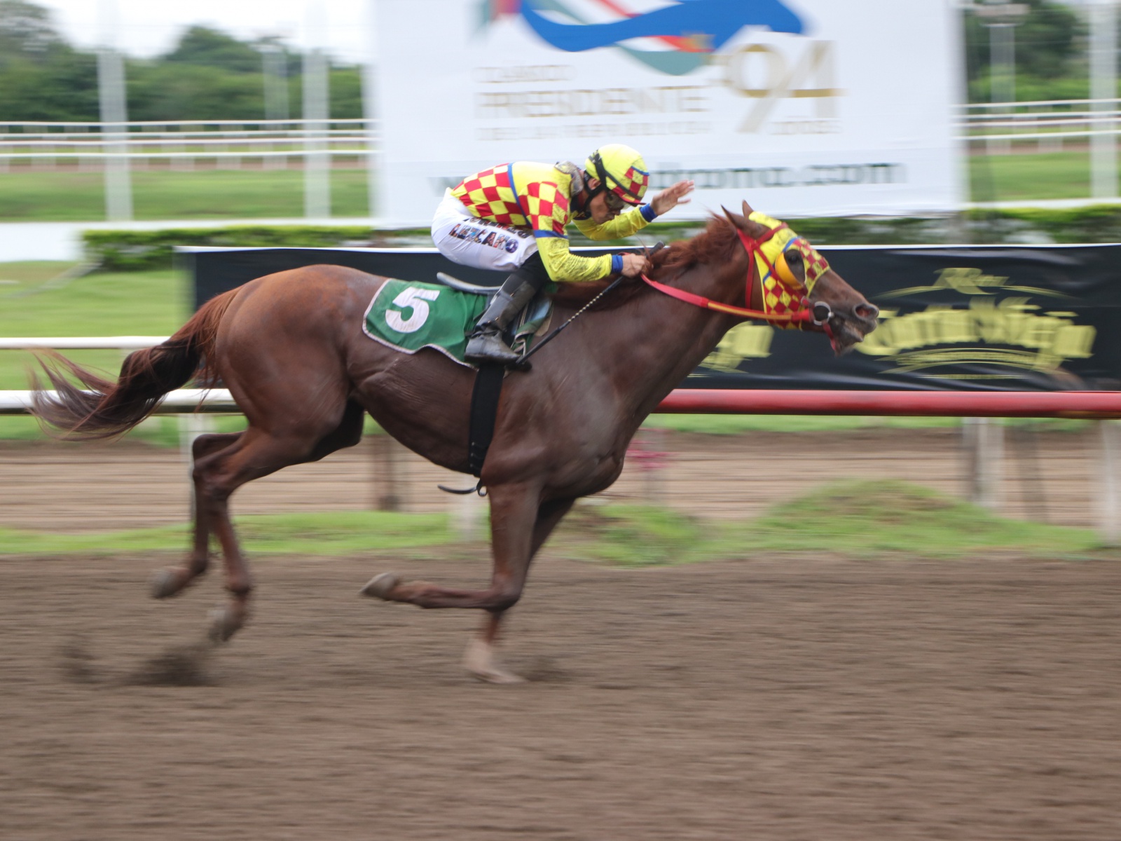 El alazán ‘El Rojo’ venía en la cuarta colocación cuando comandaban ‘Second Son’ y pegados avanzaban ‘Mister Martini’ y ‘Sin Miedo al Éxito’, pero antes de entrar en la tierra derecha ‘El Rojo’ tomó el comando, y se fue a centro de pista para despedirse de sus rivales en un franco galope.