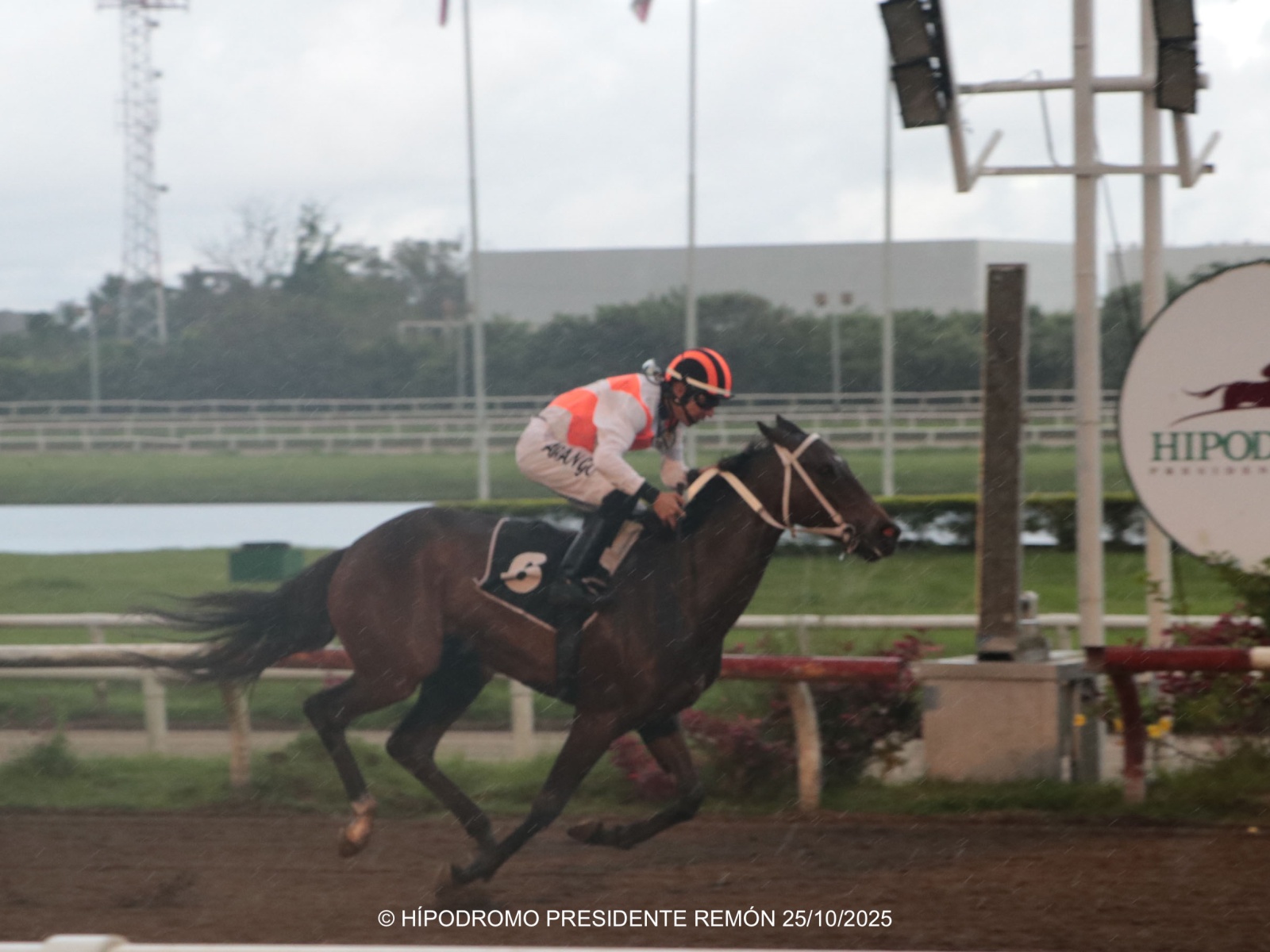 Gold Basin, potranca mulata de dos años, es hija de Basin en Seoul Gold por Medaglia D’Oro, representa los colores del Stud Cantón, bajo la preparación de Luis A. Paz Rodríguez y la excelente monta del jinete Luis E. Arango. La ganadora recorrió los 1,100 metros en 1:05 exacto, con parciales de 22.1 quinto los 400 metros y 46.1 quintos los 800 metros.