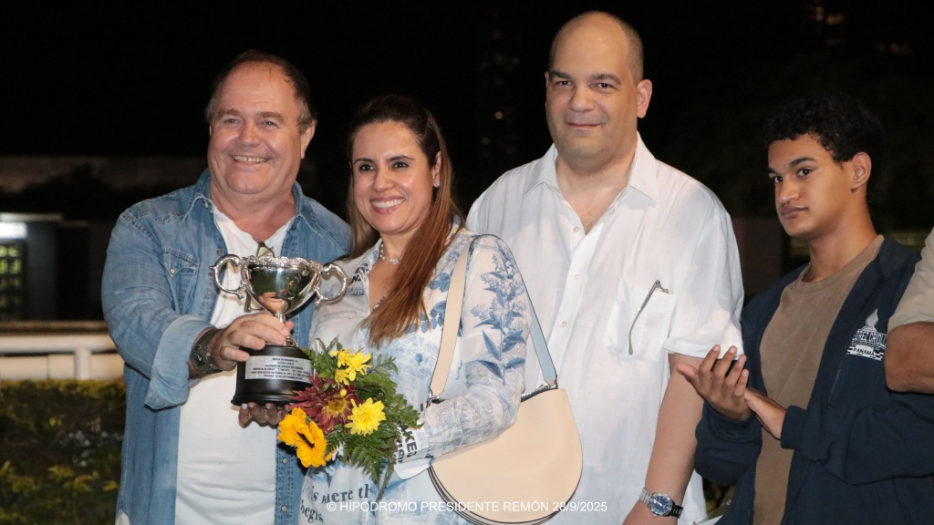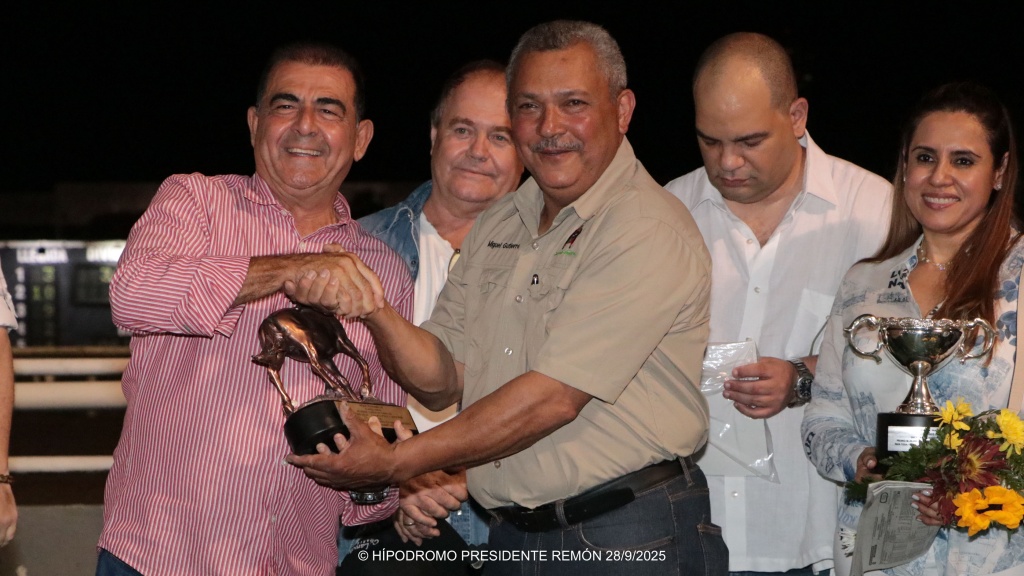 En un momento especial, Manuel Grimaldo, presidente de la Sociedad de Dueños de Caballos, hizo entrega de una placa de reconocimiento a Alfredo Prieto, en honor a su aporte y trayectoria dentro de la hípica panameña.