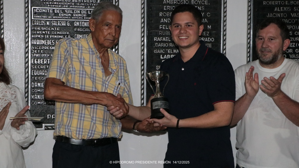 Asimismo, Marlene Shirley entregó el reconocimiento al preparador Roberto Arango; Priscila Shirley, al jinete Yonis Lasso; Estefanía Shirley, al mozo de corral, recibido por Maryeli Walter; Abdiel Solano, al palafrenero; y Eliseo Castillo, al pony boy Luis Salazar.