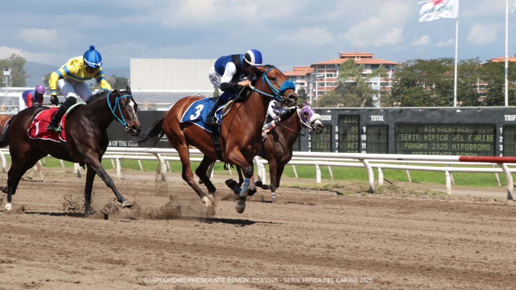 La colorada de 4 años ‘Jaque Doble’ logró su victoria N°13 en 17 presentaciones, con monta del jinete panameño Luis Arango., para los colores del Stud Carmen Cristina, criada en Haras Cerro Punta, siendo hija del padrillo ‘Indiano’, en la yegua madre, ‘Goyesca’, por el abuelo materno, ‘Indy Vidual’.