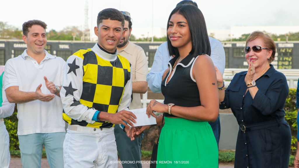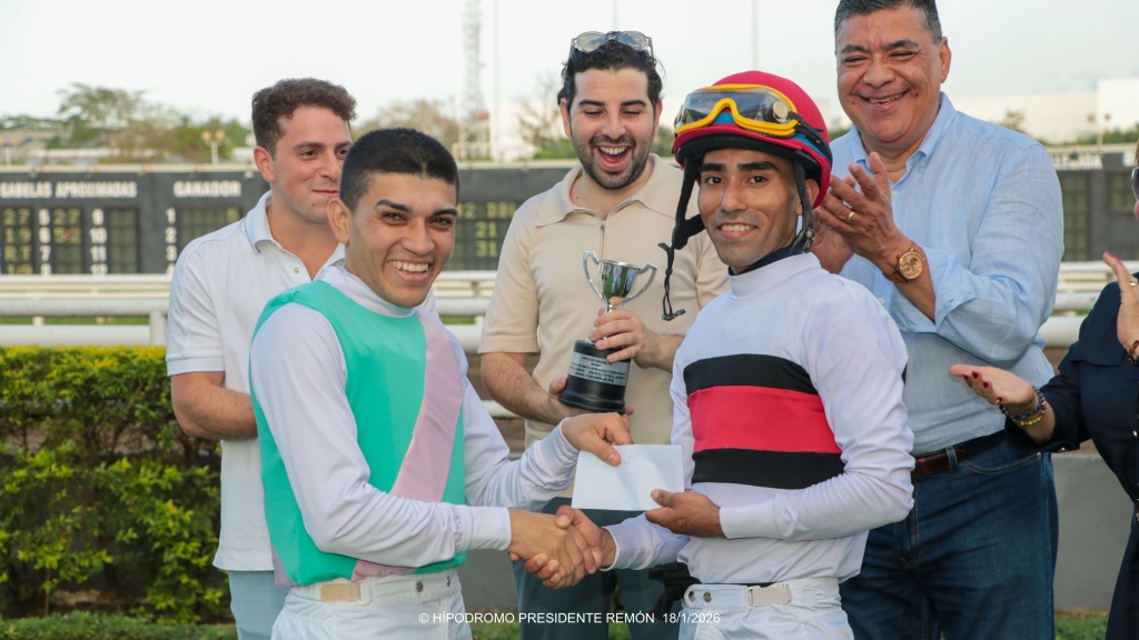 El premio correspondiente al propietario Rodrigo Jaén fue entregado por Yonis Lasso y recibido por su hija Angelina Jaén. Posteriormente, Ariosto Delgado otorgó el reconocimiento al jinete Obeth Benítez, destacando la labor que respaldó su triunfo.
