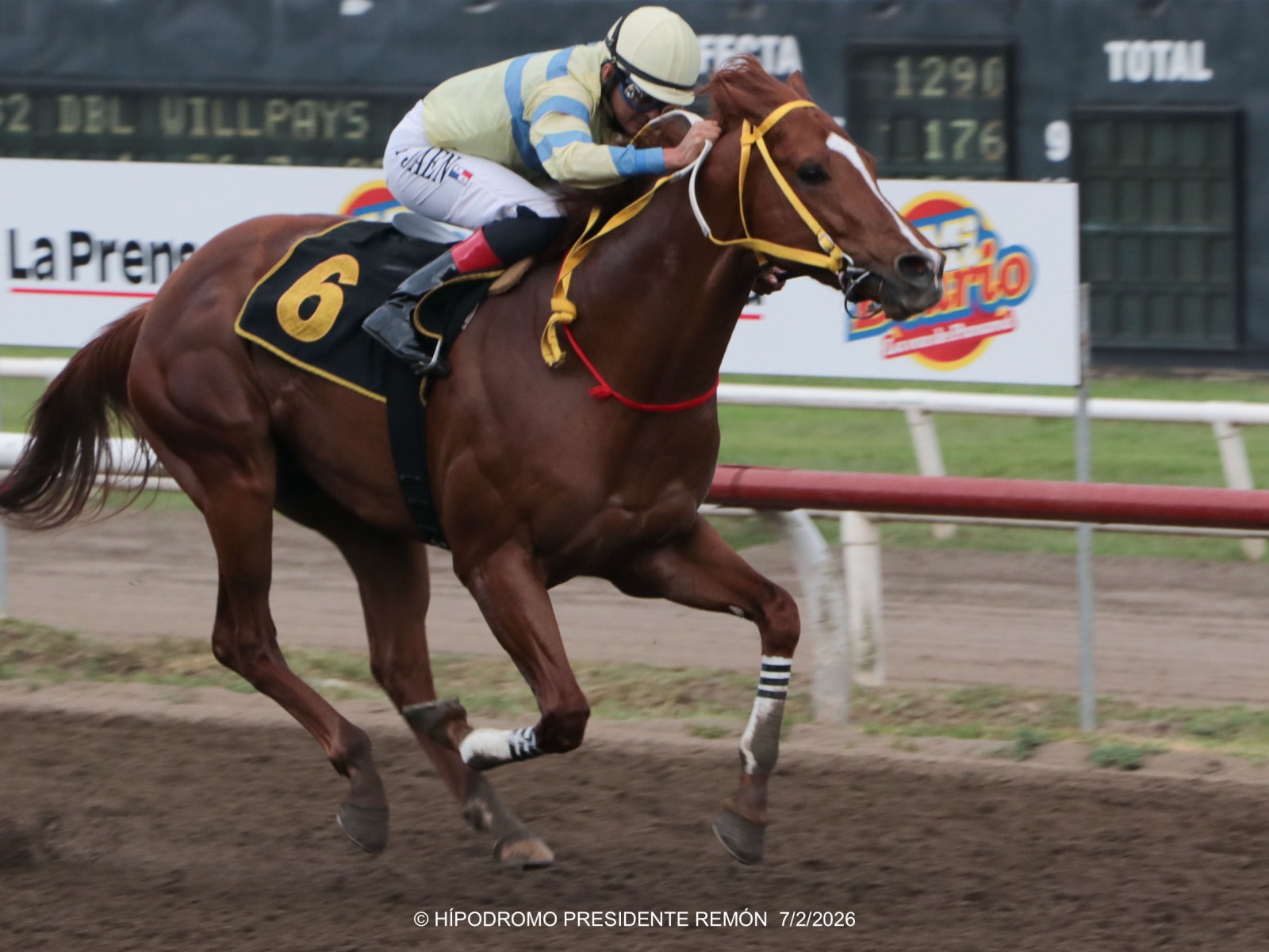 El ejemplar Rococo se alzó con una contundente victoria en el Handicap Aniversario 36 del SPI, dominando los 1,200 metros con un desempeño impecable que lo llevó a cruzar la meta con autoridad. Los parciales oficiales marcaron 23.4 segundos en los 400 metros, 48.3 segundos en los 800, y un tiempo final de 1:14.1 en los 1,200 metros, subrayando la solidez del recorrido.